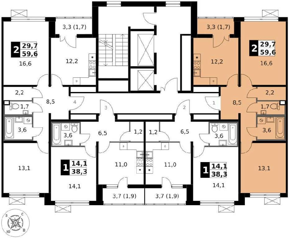 Общая: 59,6 м2