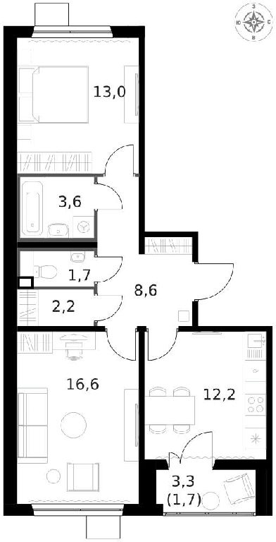 Продается 2-комн. квартира, площадью 59.4 м2.